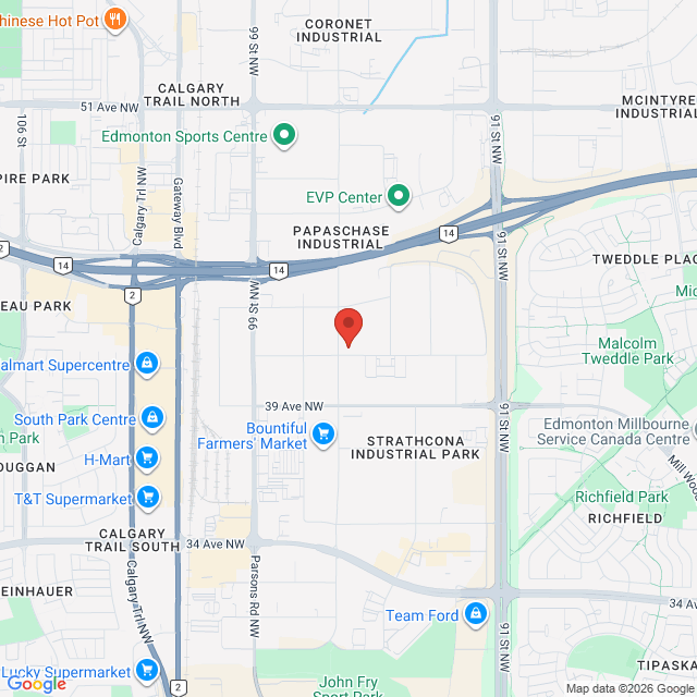 You can park in the spots marked “Complete Communications” or “Mint”. If they are full, there is plenty of free street parking available on 41 Ave to the right of the building.